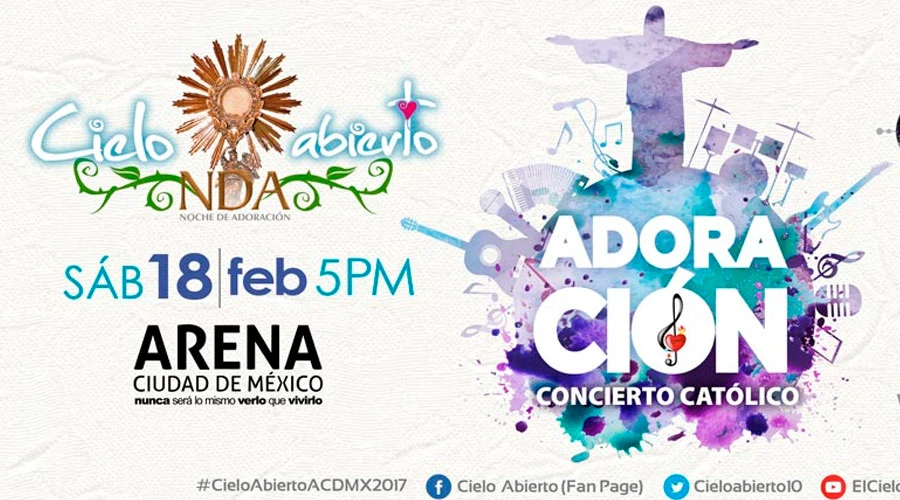 CIUDAD DE MÉXICO, 14 Feb. 17 / 09:52 am (ACI).- El concierto de música católica Cielo Abierto se llevará a cabo en la Arena Ciudad de México el próximo sábado 18 de febrero desde las 5:00 p.m. El evento es gratuito.